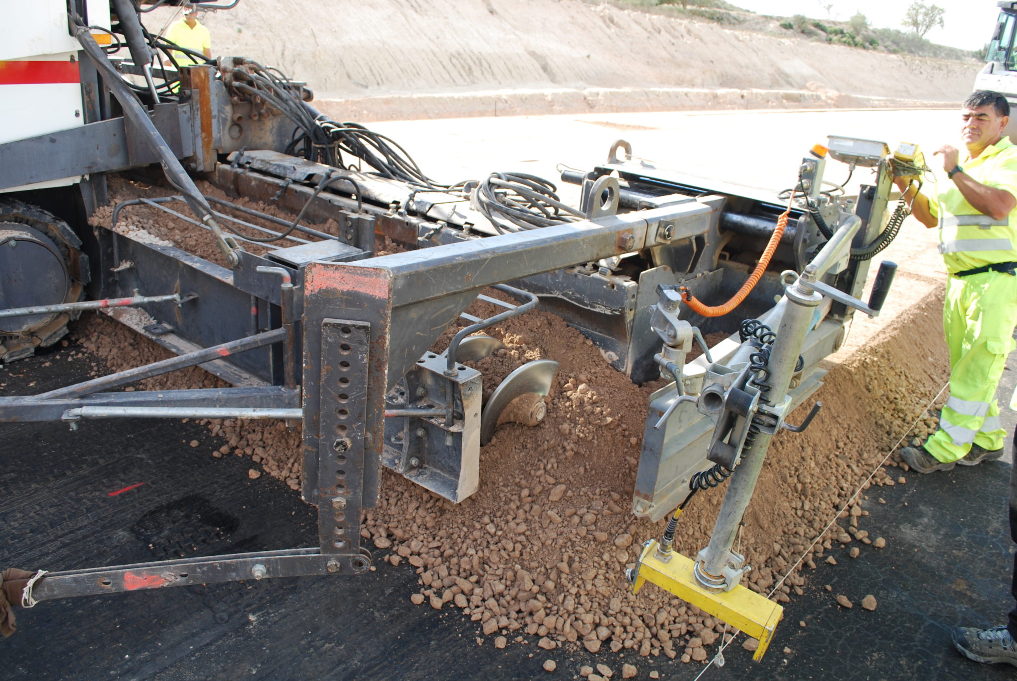 Stabilised layer S-EST2-type according to the Spanish road regulation in a rural road in Ejea (Zaragoza).